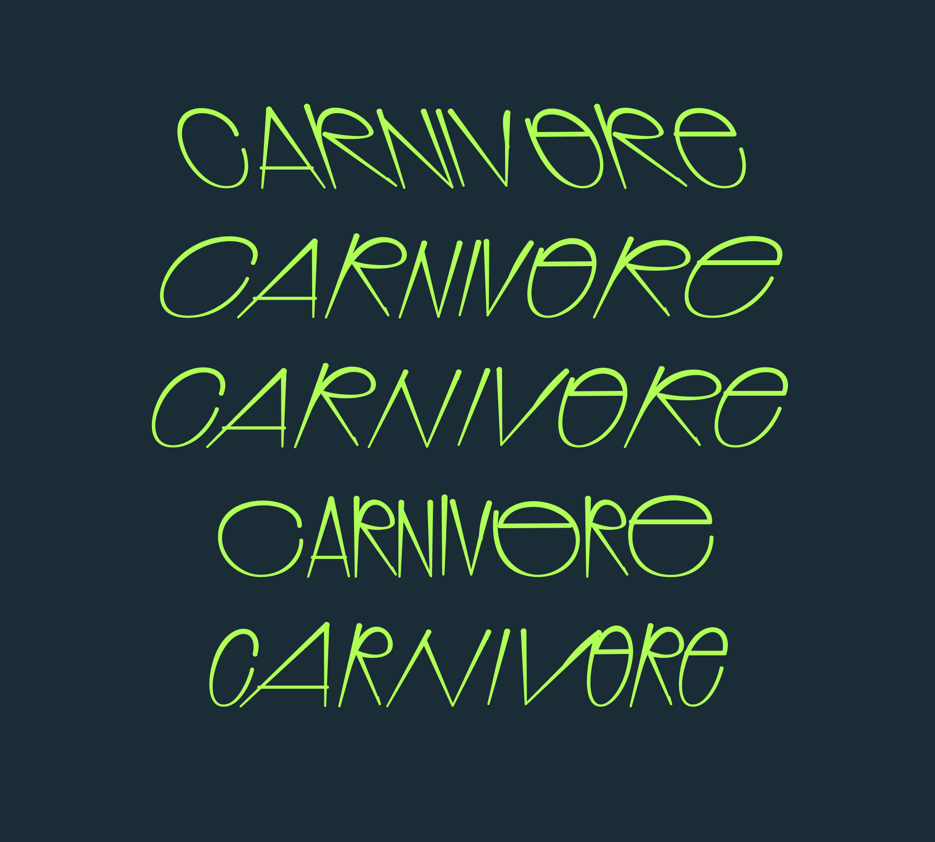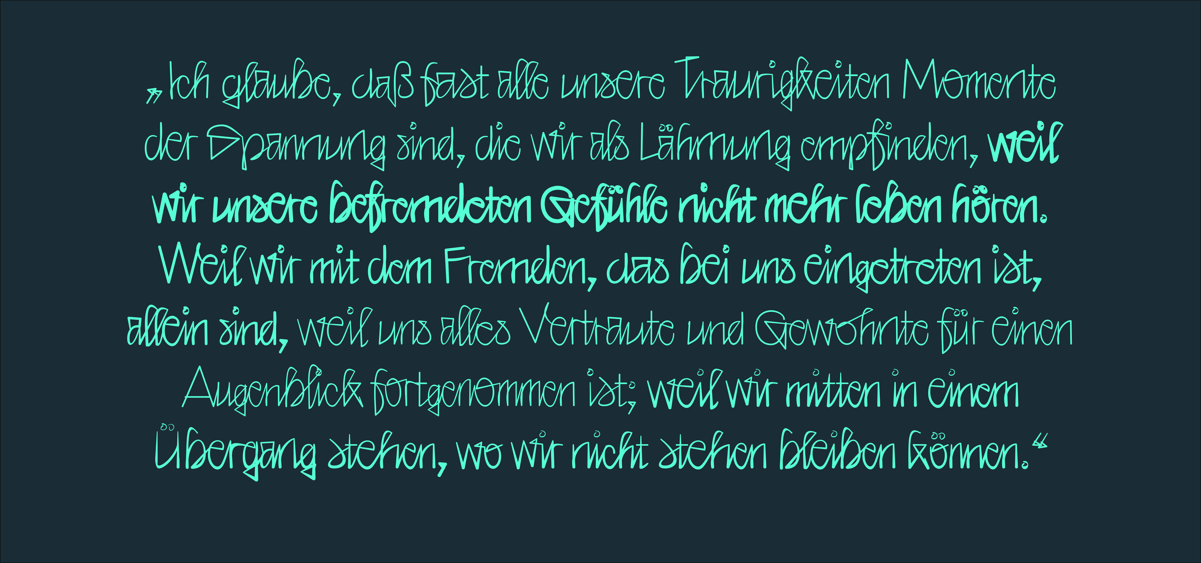 BM Glue is our contribution to representing the written hand in digital form. It is also an attempt to extend our understanding of its most important attribute: the appearance of “organicness”. To achieve this, BM Glue has been constructed via a custom pipeline. Its main feature: Each connecting letter has a bespoke connection to all other letters it can connect with (LC to LC, UC to LC) and is additionally distorted on multiple levels. This large glyphset helps create a uniquely organic feel. Three axes add further depth to the typeface by influencing its weight, weight distribution and slant.
