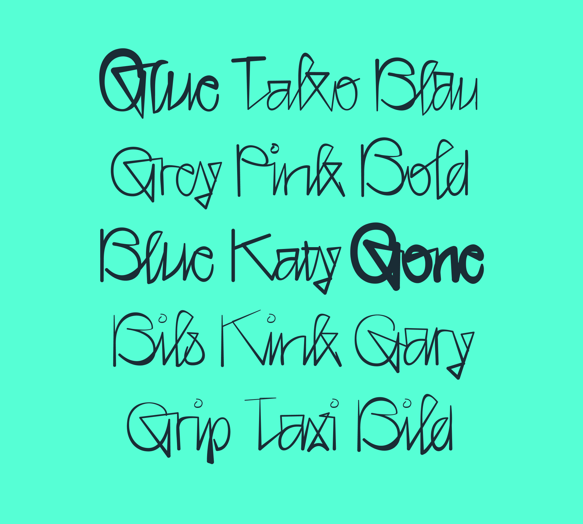 BM Glue comes with three axes: Next to the more conventional weight and slant axes, there is an additional axis called Gradient, which shifts the horizontal position of the weight up or down. This aesthetic, inspired by Graffiti, namely tagging with a fat cap, transforms BM Glue from a pen-written look to a marker or spraycan appearance.