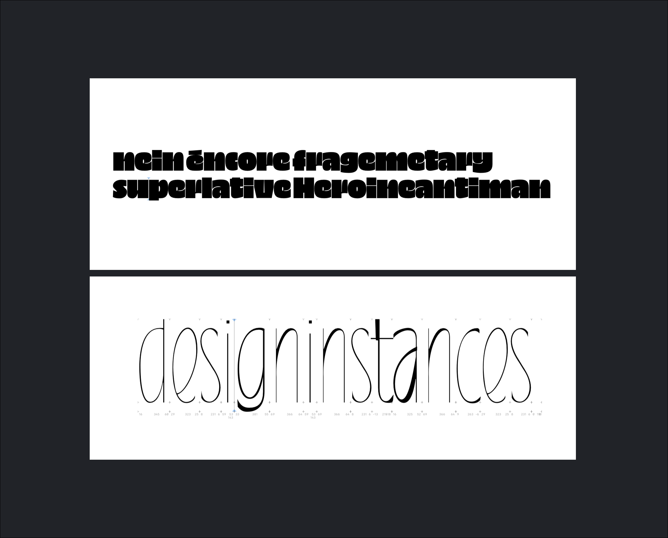 Whilst producing BM Lithe, I did think about pushing the limits of the designspace and exploring the possibilities beyond the designs I already had. By extrapolating to even more extreme sources, I wanted to see if those would be a nice addition to the project. The ultra thin hairline style, which I started fixing but abandoned, seemed unnecessary. The superblack style, however, is a lot more interesting and is something I could imagine exploring in the future. For the sake of finishing this project in time, I did finally chose to work within the bounds of what I had already designed.